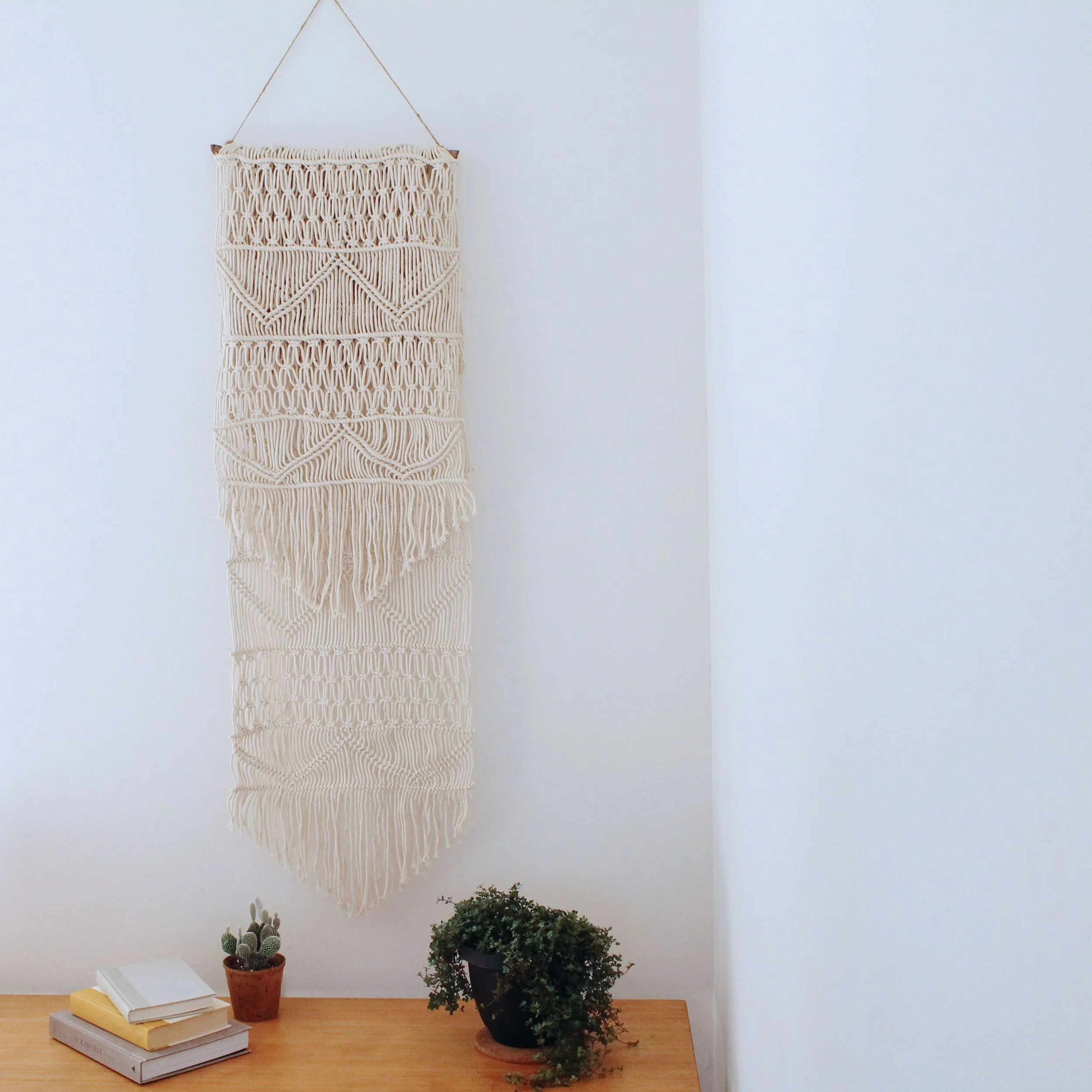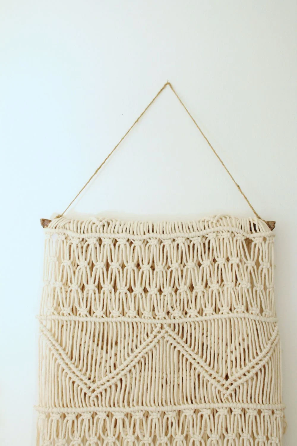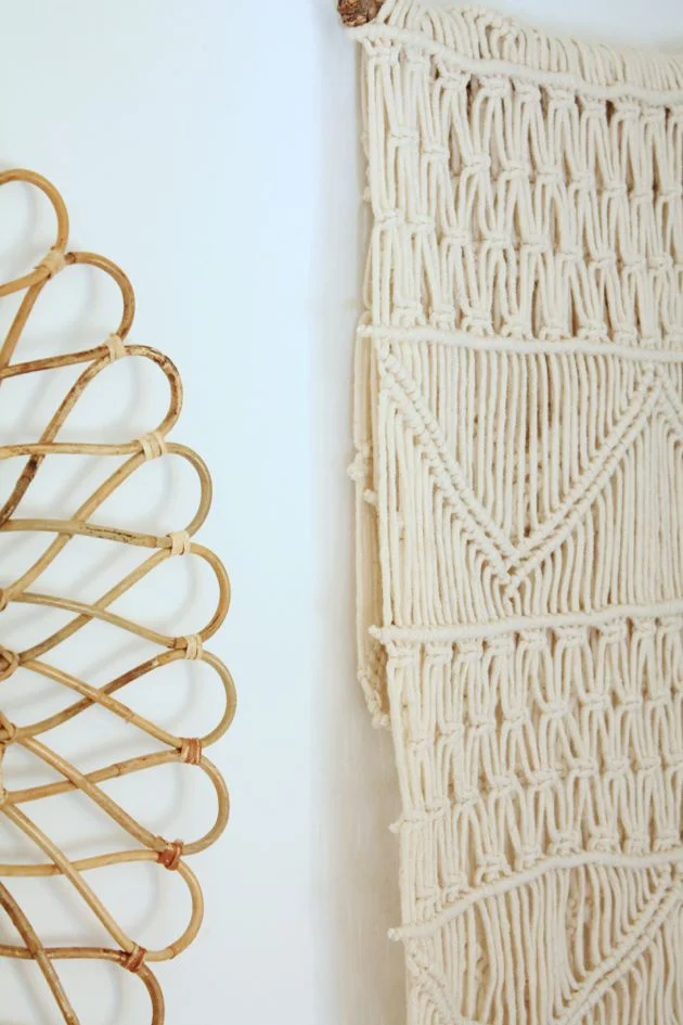 /They say you always go back to what you know. I was born in the late 70's, and I like to think that my fondness for the more subtle decor of that era is sentimental. My grandparents built their retirement ranch compound, with a mix of 1970's finishes and older pieces from the 50's and 60's, decor collected from their world travels, and an solarium full of tropical plants with a wall of window that stretched two stories. I have dreams of building such a home one day. One of the hallmarks of 1970's decor was macrame- a series of knotted strings fashioned into wall hangings, hanging plant holders, table runners. As our cultural obsession with mid century interiors moves to the next era, here it is, back in fashion. I don't want to decorate my whole home in macrame, but a wall hanging here and a plant holder there wouldn't hurt.