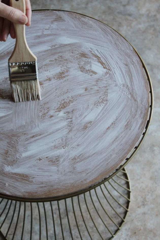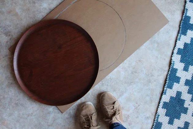 We applied a generous coat of wood glue to the top of the particle board and centered the tray on top. Using a cast iron skilled and a full paint can, we made our own weight and allowed the tray to adhere for 24 hours before removing.