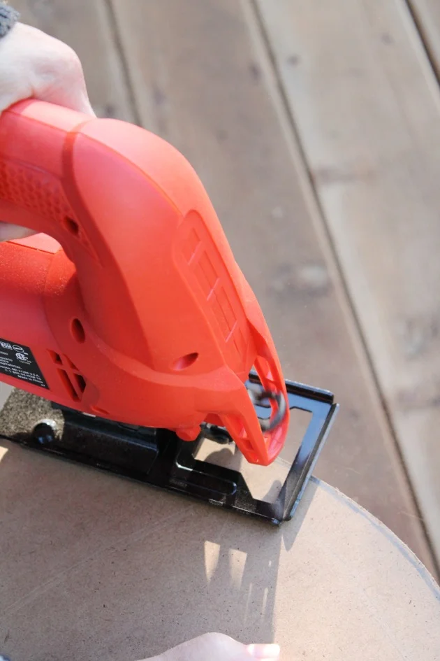 After tracing the circle we cut the base using a jigsaw, sanding the edges to get a perfect fit.