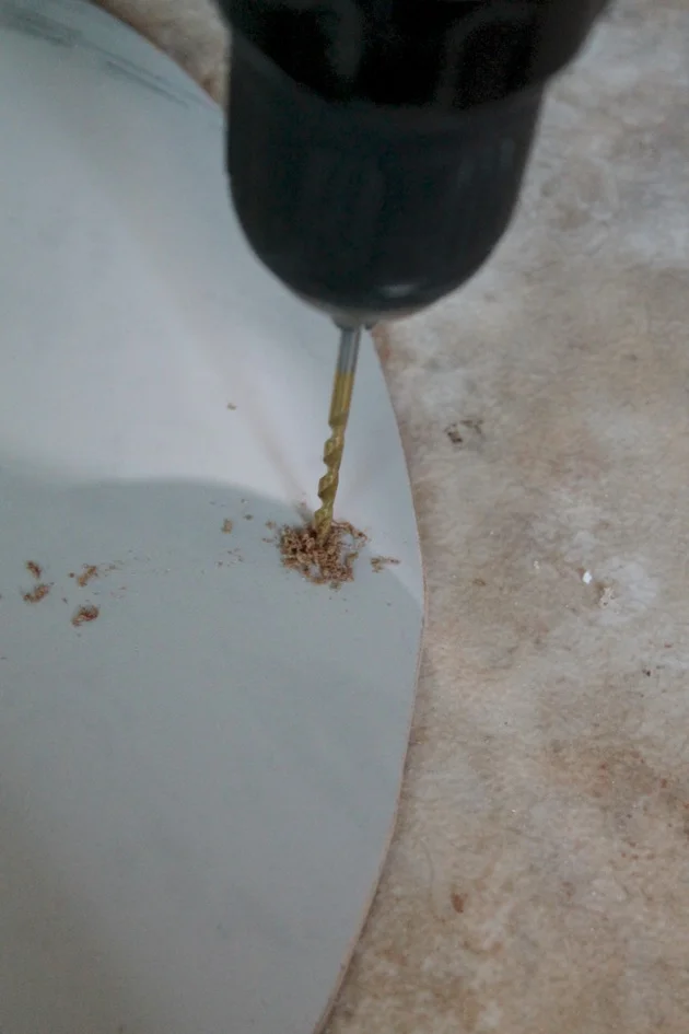 Next, we drilled holes for the screws, and attached the particle board to the base.
