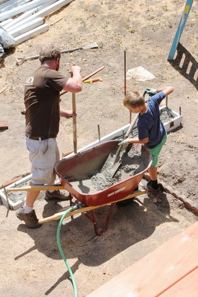 /Hi, it's me. I'm crawling out from under a pile of wood to bring you a renovation update. Over the past few weeks, the narrow 40" x 40' balcony that flanked the back of the house has been dismantled, piers dug out, and a new structure, both functional and beautiful has been constructed in it's place. Here's the story of our deck...