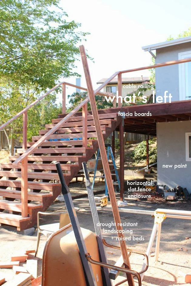 And here we are two weeks in. Over the next few days the fascia boards and cable railing system will be installed, and then we're having the house painted, at which point we'll have to start eating ramen for dinner every night until we begin the interior remodel. Stay tuned for the big outdoor reveal soon!