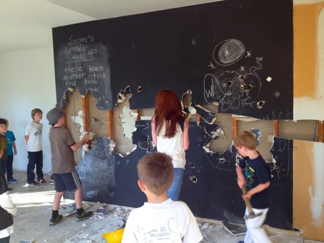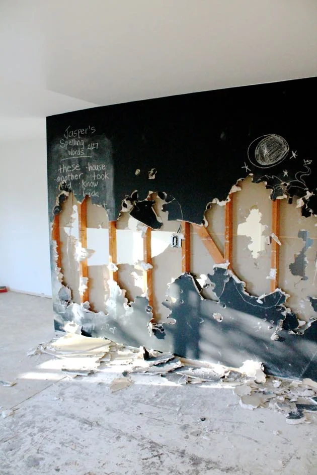The boys had a few friends over for a wall breaking party before the real demolition began. We opened up a section of the wall to make sure there was no electrical, and let them smash the drywall and eat cupcakes.