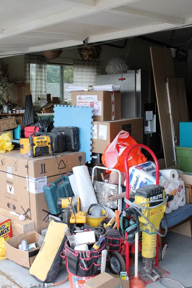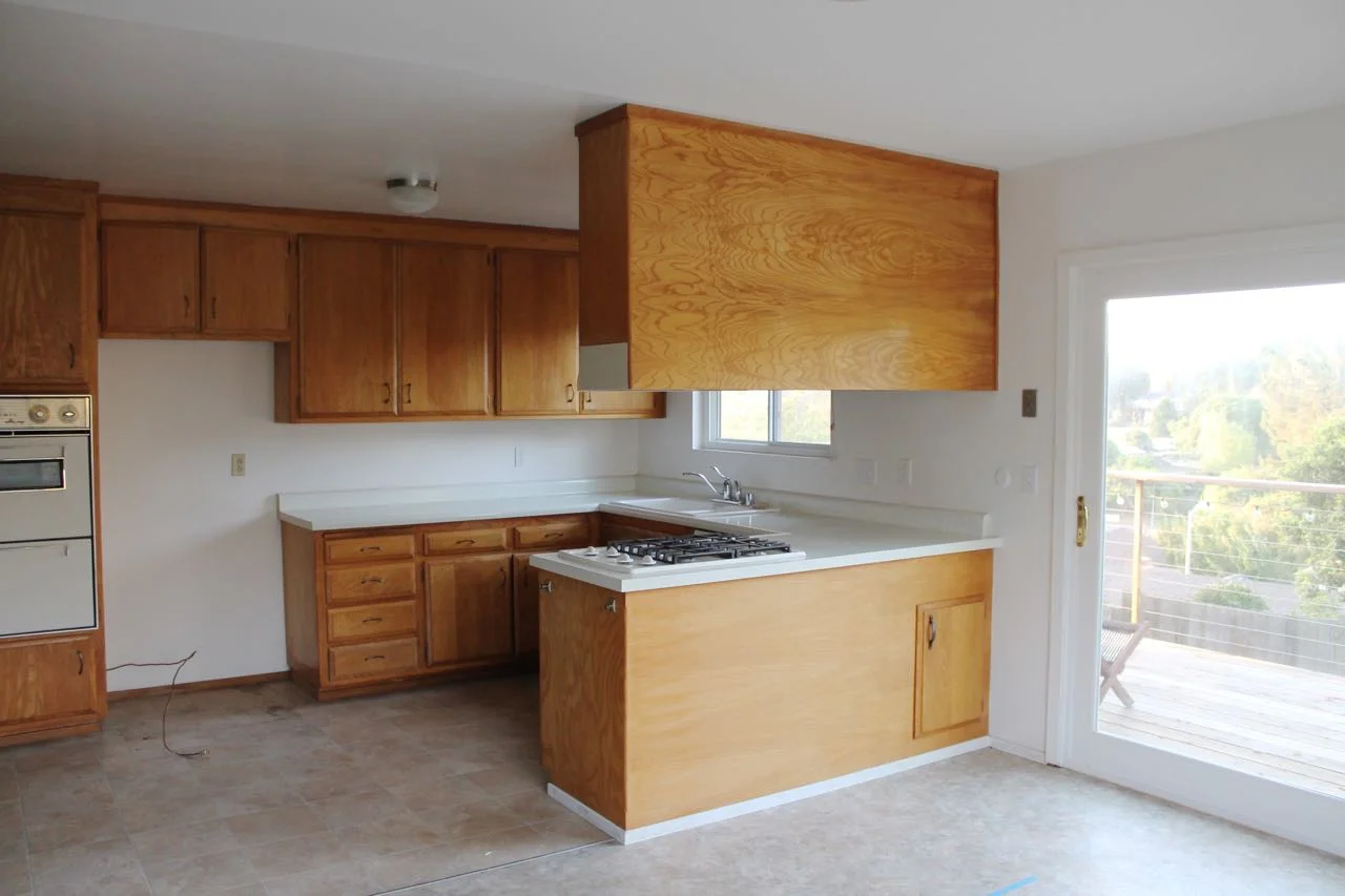 Last Monday we cleared out the last of our belongings from the kitchen, living room and dining room. We are donating the original 1960's wall oven along with the remaining appliances to Habitat for Humanity. The fridge found a new home in our garage, a makeshift kitchen/storage facility.