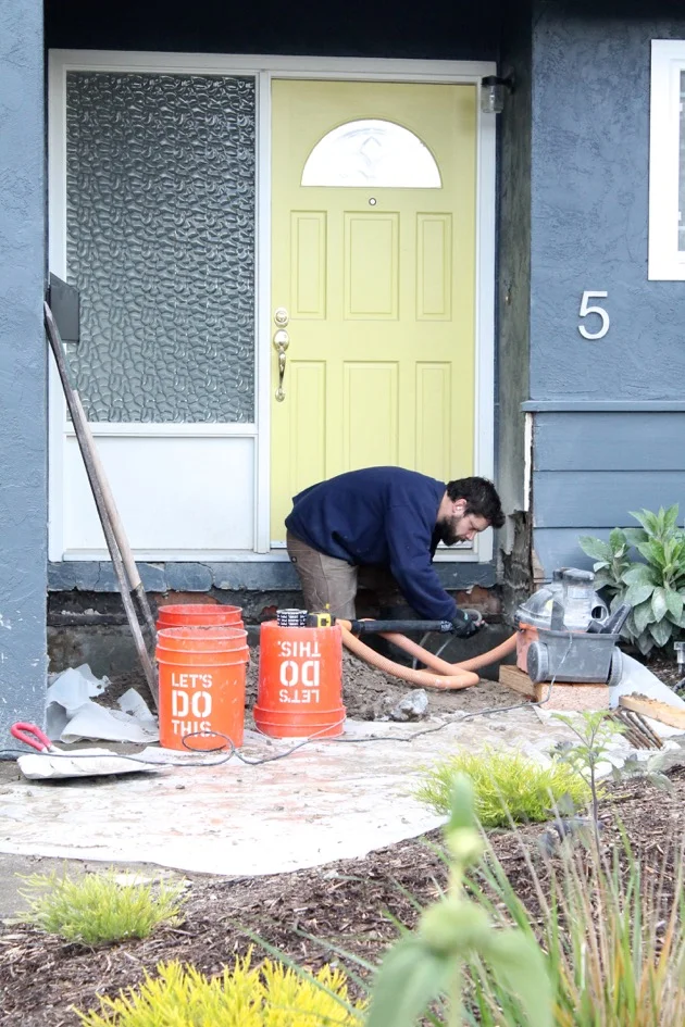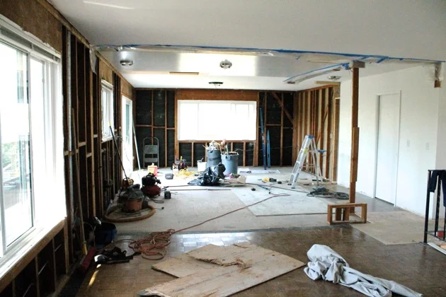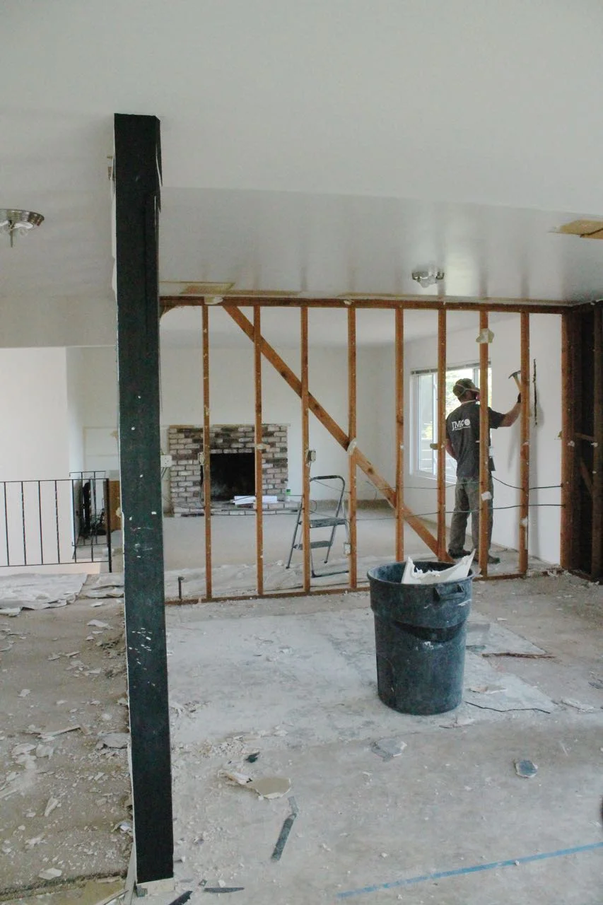 /I am sitting on the original parquet wood flooring, lightly coated in sheetrock dust, surrounded by canvas tarps in the skeleton of my former living room looking out into small expanse of our newly opened up house. I feel both thrilled at the progress and consumed with pangs of horror for having destroyed the place we call home. A live-in remodel is not for the faint of heart, and doing it all with children is just bananas. There's a reason why people move out. After almost a year of planning, a month long battle with the city about a 13 sqft addition, and an eleventh hour refinance to restore our budget after having to bring on a structural engineer we have arrived, one week into a seven week renovation, making toast in our garage and doing dishes in a work sink. This is the ugly part, the deconstruction. Here is the past week in pictures...